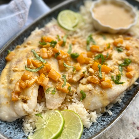 Broiled Tilapia with Thai Coconut Curry Sauce