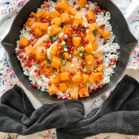 Sheet-pan Sticky Pomegranate Chicken and Honey Roasted Squash